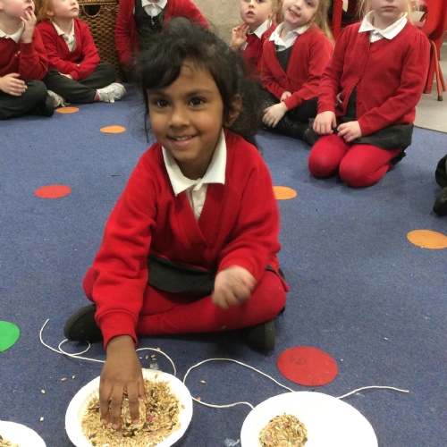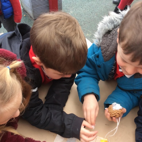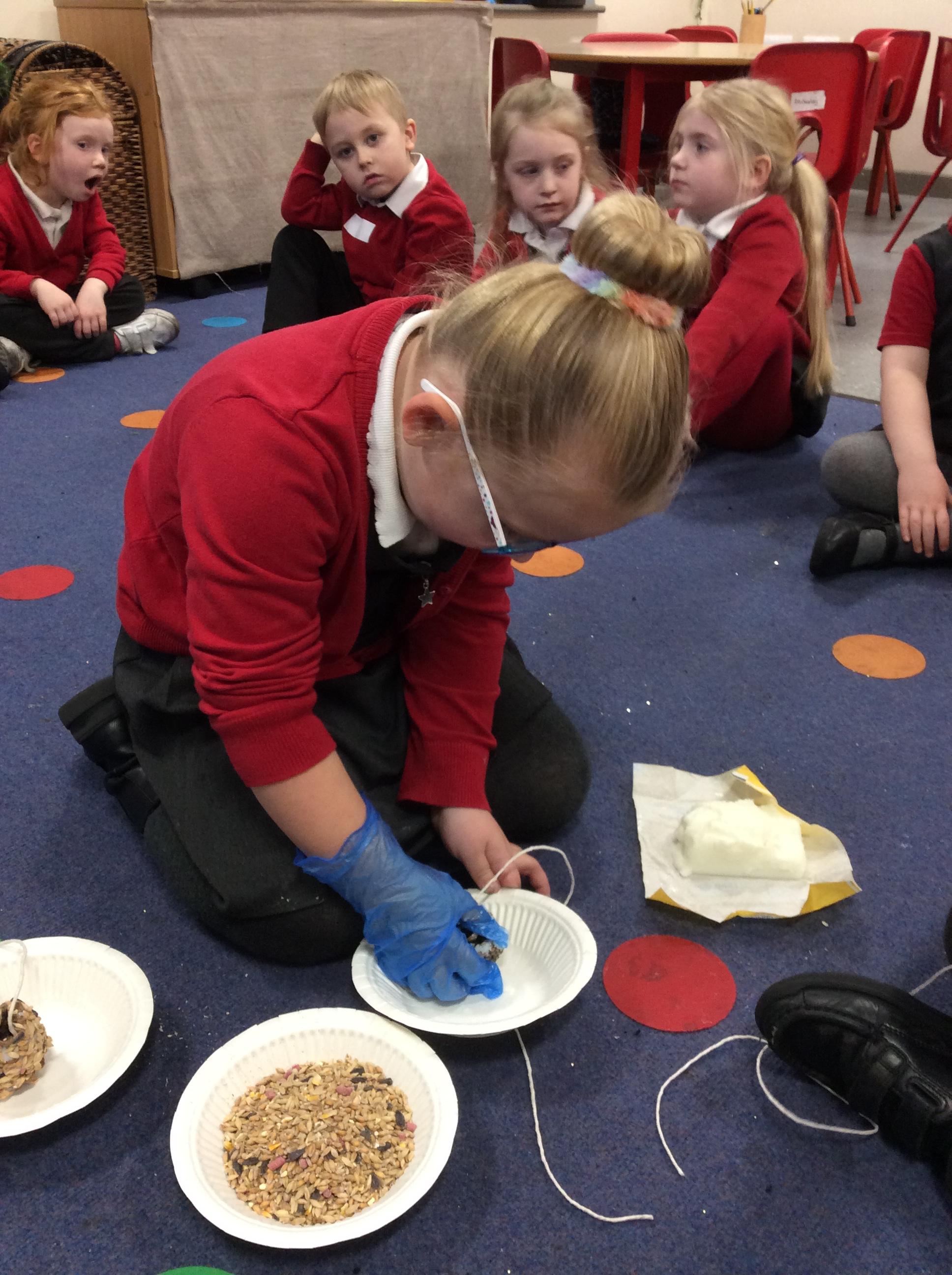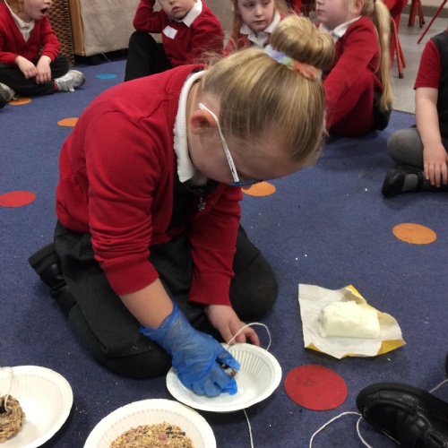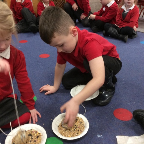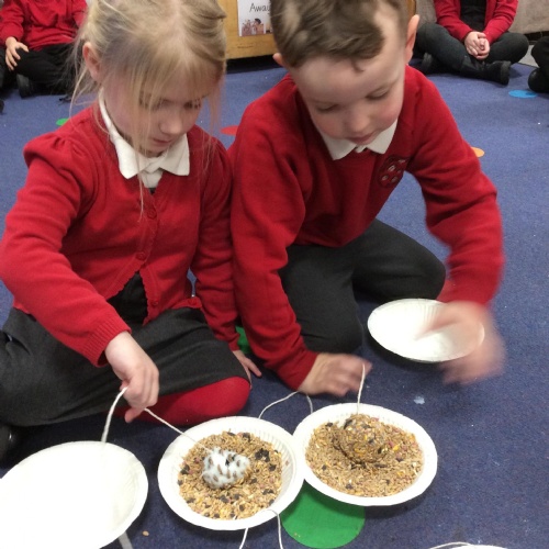 In F2, we have been making bird feeders to help birds during the winter!